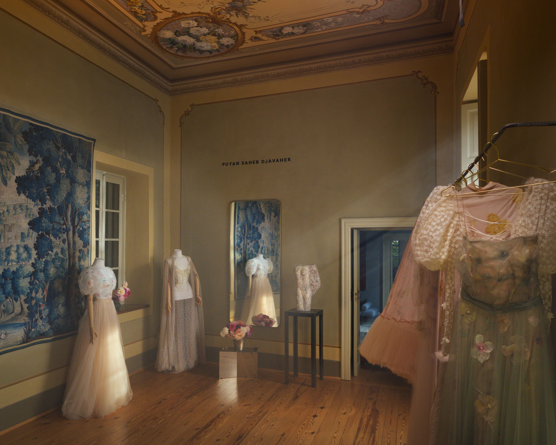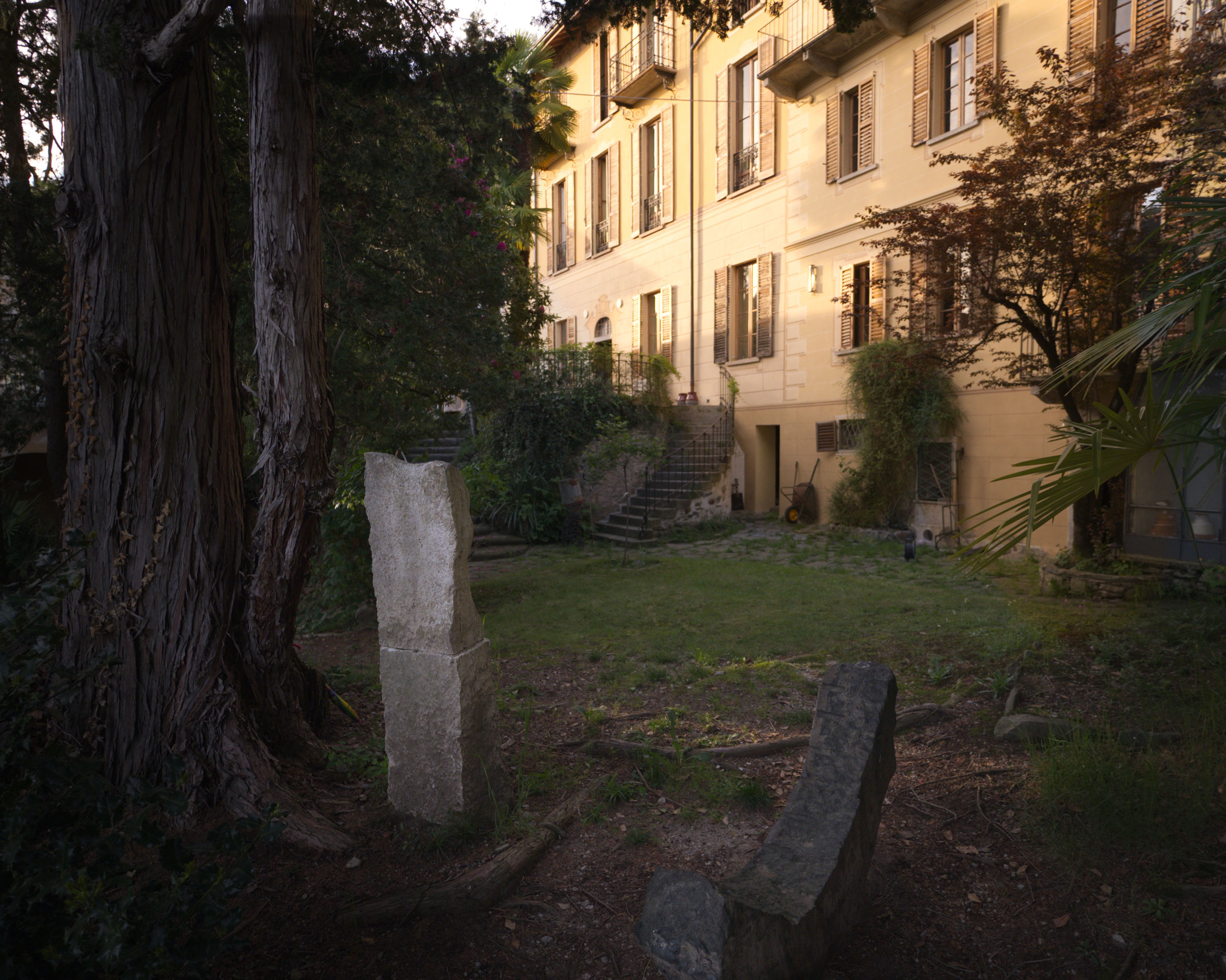 Our showroom is located in an old palazzo overlooking Lake Maggiore. The building has kept much of its original character — high ceilings, old stone floors, and windows that open toward the garden. Here we also work in our atelier, where each piece is developed and made by hand. The garden surrounding the house, with its changing light, flowers, and quiet atmosphere, has become a natural part of the creative process and an ongoing source of inspiration for the garments. Visits are possible by appointment, and visitors are always warmly welcome.